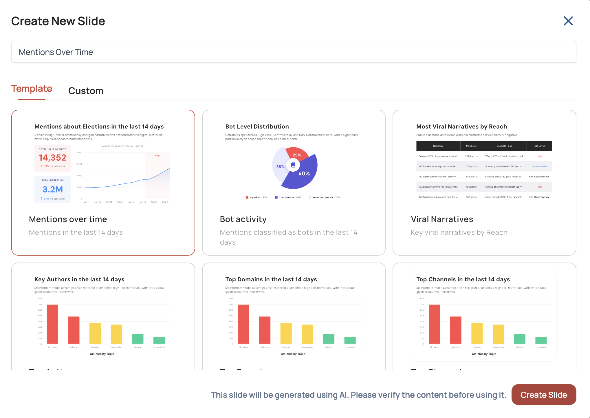 Select one of the six available slide templates to generate your report.