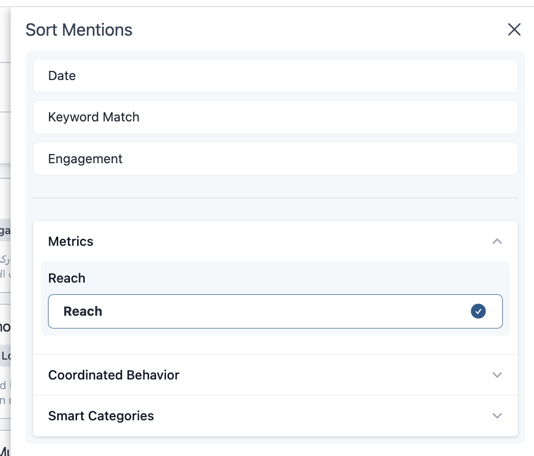 - View workspace results (either mentions or narratives) in order of highest to lowest reach to understand which mentions or narratives have the most potential influence.